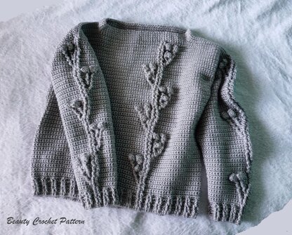 Gray Flowers Sweater Pattern comes in 2 sizes: S/M; L/XL Materials you'll need: Crochet hook: G - 4 mm; H - 5 mm Yarn: DK; light worsted #3; 8 ply Yardage: S-M: 1600 y L-XL: 1800 y
