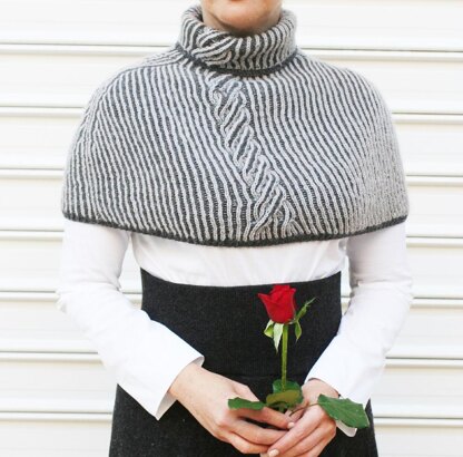 The capelet is worked in one piece circular, and from down to top and accentuated decreases give the shoulde