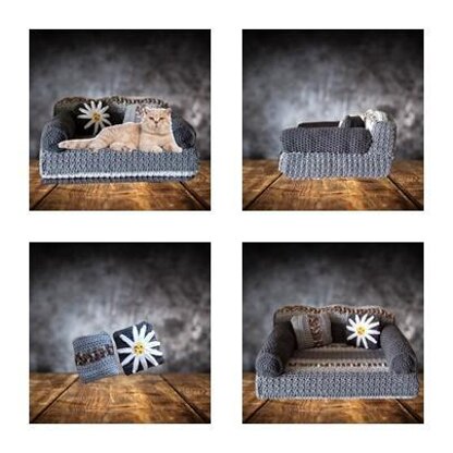 will give you the idea of how to put it all together and the pieces needed. The couch when done is 18” x 14”. My cat is loving being in his. He even lays on the pillows. The pattern is written in US terminology.