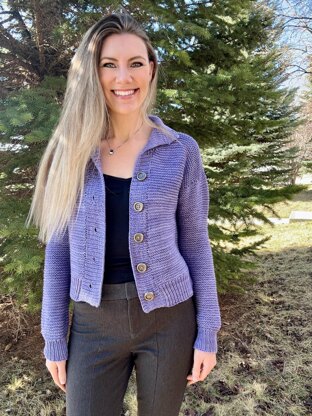 The Great Garter Bomber is a stylish and modern dk weight top-down knit. It features a cropped design (which may be altered to preference) and a squishy folded collar. Thick edging compliments the boxy design of this knit, and large buttons or toggles add flare. This simple cardigan is a must for all styles and wardrobes! Dress it up, dress it down, but be sure to have one in your closet.