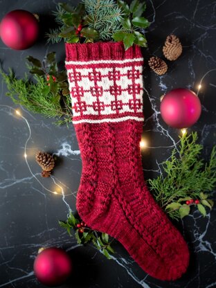 This striking stocking takes its inspiration from the American Craft Movement, with an allover “postage stamp quilt” pattern accented by colorwork in a Craftsman motif. Designed to engage the knitter with ever-changing stitchwork and tiny cable details—it’s a great way to use that special, single skein of heritage wool yarn along with leftovers in a contrasting shade. While the overall result is rich with texture, the stitchwork is quite simple, framed in a straightforward sock construction with both written and charted instructions. This project will fill that need for a final, festive quick knit to sit back and enjoy while getting your holiday cheer on.