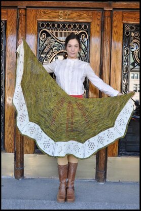Greenhouse is a more than half circle Art deco inspired shawl. An organic lacy shape grows from the center in a garter stitch body. A flowery lace border knitted in a contrasting color achieves the blooming of Greenhouse shawl.