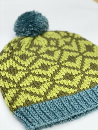 A modern take on Fair Isle knitting, “Greenville” has an all over bold graphic design. It’s a simple to memorize pattern that creates a geometric pop.
