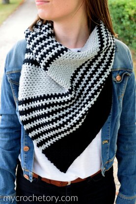 Greus Cowl combines crochet moss stitch (granite stitch or linen stitch) and stripes in diagonal style. It’s worked back and forth on bias and then seamed to form a cowl. This cowl is fast and fun to crochet and absolutely effortless to wear.