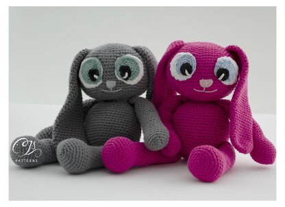 This pattern is written in English (using US terminology) and Dutch languages. Detailed instructions and pictures will help you to crochet all parts of the toy. The size of finished bunny depends on yarn and hook you are going to choose. My bunny is approx. 16.5 cm (6.5 inches) tall when sitting.