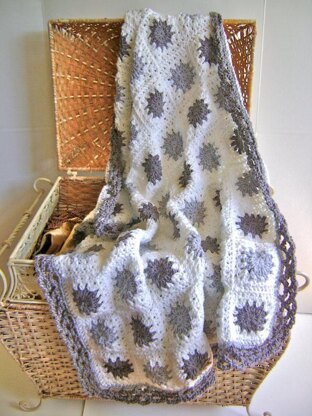 Perfect for the modern mommy and baby. Two shades of grey and crisp white take a retro classic to today's baby. A lacy border is not to feminine as to offend the manly senses.