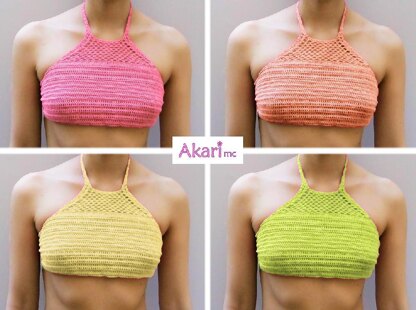 This is a discrete but super fun bikini top. It has a grid on the top that reveals the skin.