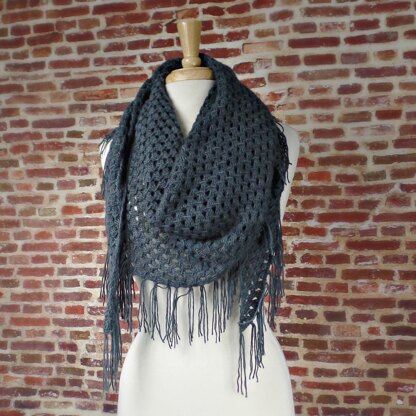 The bias shape helps to make the most of your yardage, and the simple lace pattern works up beautifully in any weight yarn. Simply cast on and work until you reach the desired size.