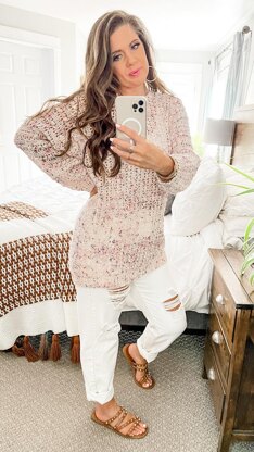 The Gum Drop Pullover is a fun textured lightweight sweater that’s worked in one piece. The only seaming required is up the sides and sleeves making it a great beginner pattern. The open and airy bobble stitch makes it the perfect summer pullover.