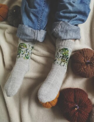 Gusto sock futures dinosaur colorwork pattern on the leg. I can't say, that the colorwork part is easy, you definitely need to follow your chart for leg, but after that, it is smooth sailing.