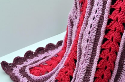 Crochet blanket made in strips so you can adjust the size by making more strips or working them longer.