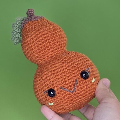 Halloween is one of my favourite seasons, I love the dressing up and the guilt free lolly eating, and I love decorating the house! In Australia, Halloween happens during spring, but we still have pumpkins for carving and it's such a fun activity. I thought I'd switch things up a bit and make a gourd instead of a pumpkin. If you're interested in unusual Halloween lantern vegetables, I also have a free pattern for a Halloween Turnip that I released last year (and there is a cool story to go with it!).