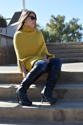 Wrap up in cozy-chic by way of this warm and trendy turtleneck poncho. The poncho is worked top down in the round - features arm-slits and adorned with puff stitches.