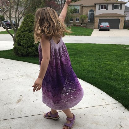 Gwylim is a lovely dress, which is completely seamless, top-down. This will grow with your little girl into a tunic top, has a lot of positive ease and the length can easily be adjusted. This looks great over a long sleeve shirt and tights for winter and as a dress in the summer. Suitable in wool or cotton. The lace is written and charted.