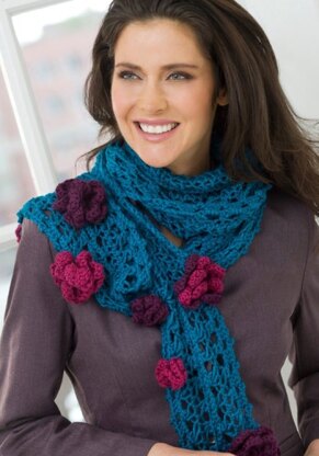 Hairpin Lace & Flowers Scarf in Red Heart Soft Solids - LW2200