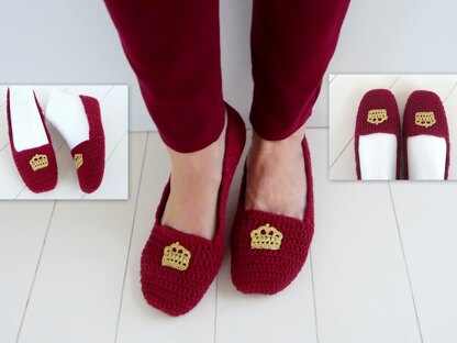 Häkelanleitung - Hausschuhe häkeln - Ballerinas mit Krone - No.103