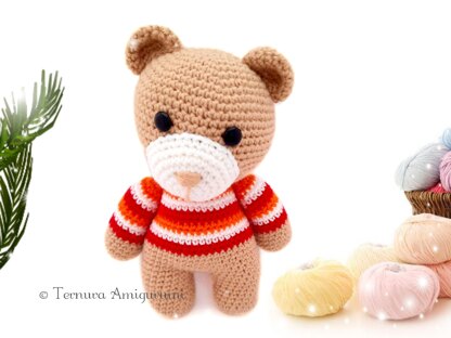 Ich präsentiere dir Noah!, einen süßen Bären mit einem bunten Pullover! Es ist sehr schnell und macht Spaß. Sie können die Farbkombination zusammenstellen, die Ihnen am besten gefällt, und sie jemand Besonderem schenken! Es ist ein gutes Geschenk für Kinder und auch zum Valentinstag! Legen Sie gleich los mit dieser Häkelanleitung! Die fertigen Maße betragen ca. 23 cm. Die Größe kann je nach Größe der Nadel und des Fadens variieren.