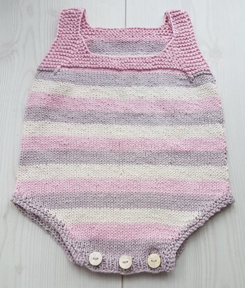 Baby pattern Haley No 1 is an easy-to-knit romper. Perfect for warm summer days.