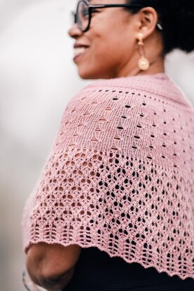 This elegant half circle shawl is a lace adventure; with leaves on a river, and sparks over the Moon. Beads can be added to increase its shine and glamour. The pattern includes both written and chart directions. It’s knitted top-down.
