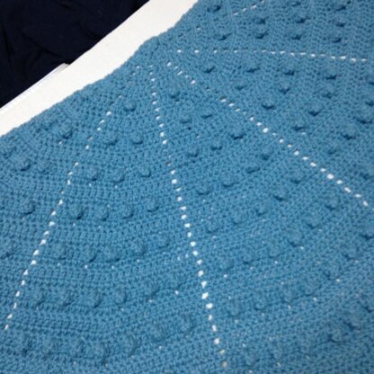 Easy to crochet popcorn stitch shawl is made in a half circle. Continue in the established pattern if you want a longer shawl. This lightweight shawl is made in easy care sport yarn, and is ideal to keep you comfortable on a cool spring day.