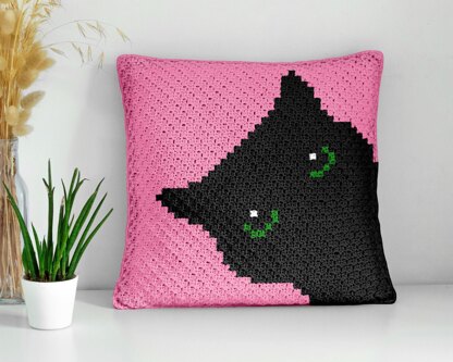 🐱 Black Cat Pink Pillow Corner-to-Corner Crochet Pattern