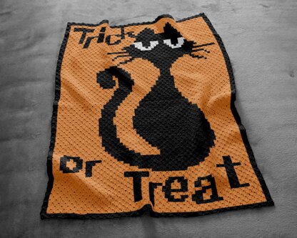 Halloween Cat Orange Blanket Trick or Treat Afghan C2C Crochet How-to