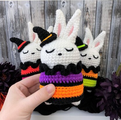 Have fun crocheting this cute bunny who loves to dress up as a witch for Halloween! It's really easy to change up the colors of her dress too so you can use all the best holiday colors.