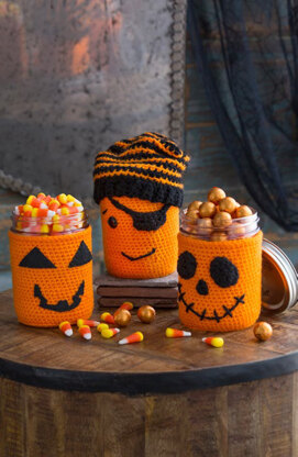 Halloween Jar Cozies in Red Heart Super Saver Economy Solids - LW4910 - Downloadable PDF