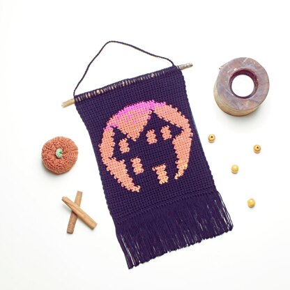 This pattern is part of the Twilight Halloween Collection, a set of three Mini wall hangings: The Cat, The Bat, and The Haunted House. The pattern come in easy-to-follow written instructions and graph/ chart. In addition to step-by-step photos for finishing your wall hanging in a perfect look.