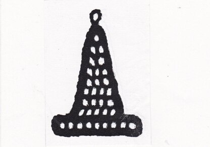 I was in my filet crochet mode when I designed this witch's hat for hanging on my Halloween tree. I made it with black Knit-Cro-Sheen on a size 9 steel crochet hook. It is also looks great hanging in your window.