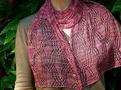 A fine, featherweight scarf pattern in a luxurious silky yarn, suitable for any climate. An arabesque motif with the appearance of repeating “Hamsa" talismans graces the length of this piece. Simple decreases and all-purl “rest" rows result in a fabric that looks far more intricate than it is to work.