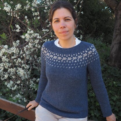 Hanafubuki sweater is a circular yoke that is worked seamlessly from the top down. The neck is worked first, after that, several series of short rows are used for a comfortable and beautifully shaped finish.