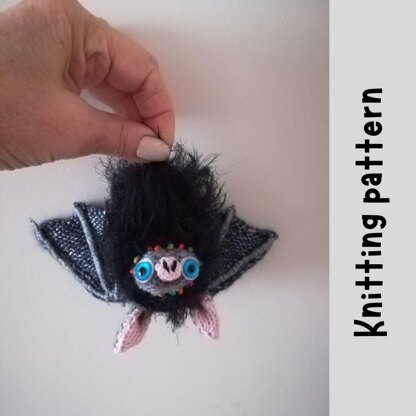 This cute Bat is knitted with yarn. There is a crocheted element - a pink nose.