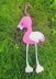 Crochet a whimsical, fun, hanging flamingo, with dangly ribbon legs. A cute tropical decoration for anywhere in your home or garden! This pattern also includes a bonus mini size! This makes a perfect keychain or bag pull!