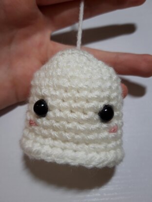 This pattern can be used to create a small amigurumi ghost (no stuffing) that can be placed or hung for halloween decorations.