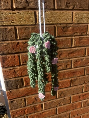 This pattern is for a hanging plant I designed! It measures 30cm in length from the base of the pot to the top of the handle and the width of the pot is 6.5cm.