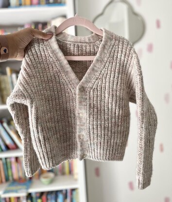 The Hannah cardigan is knit top down in half fisherman’s rib with a double knit button band. What is unique to this cardigan is it utilises 2 different gauges, the body is knit with 2 strands of fingering held double to achieve a DK gauge. You then pick up stitches along the front edges of the cardigan, and begin double knitting with a single strand of the fingering yarn, to create a double thick button band. There is also a modified option to create a more classic ribbed button band. This is the option to use if you decide to utilise a DK weight for the entirety of the garment. The sleeve stitches are picked up around the armhole, then evenly spaced decreases are worked along the length of the sleeve. Simple 1x1 ribbing finishes off both sleeves and bottom hem.