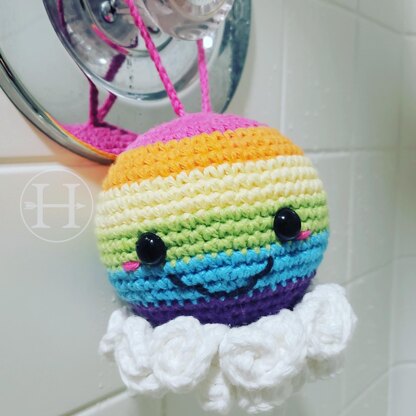 This pattern calls for cotton worsted weight yarn, approximately 6g of each rainbow color and 1oz of white cotton for the cloud part with a 3.5mm crochet hook. 12mm safety eyes are used.