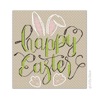 Happy Easter Counted Cross Stitch Pattern and PDF Digital Download. Easy to Follow Embroidery Chart featuring cute pink and white bunny ears with modern lettering "Happy Easter". This cross stitch pattern is perfect for anyone looking to add a touch of festive spring decor to their home or create a special Easter greeting card.Stitched on Aida 14ct: 10 x 10 cm (4 x 4 in)DMC Threads: 4 solid colours (0 blends)Used stitches: full cross stitch, backstitchSkill level: Easy / BeginnerStitch time: 10-15hCross stitch pattern in PDF, Instant Digital Download includes: 1) cover page with preview; 2) instructions, symbols key and shopping list (DMC thread colour numbers and estimates, as well as fabric options); 3) two black and white charts, with and without backstitch; 4) two colour charts, with and without backstitch; 5) single-page file for Pattern Keeper (available on request).Please note: This pattern is for personal use only - not for commercial use. You can't make copies of our charts to distribute (either as PDF or printed versions) but you can definitely sell your finished cross stitch work.