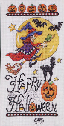 By Linda Gillum. Happy Halloween says it all in this fun and funky vertical sampler by designer Linda Gillum. Witches, bats, jack вЂo’ lanterns and a full moon fill this spooky scene. This cheerful design will delight and brighten your home every autumn as Halloween approaches.