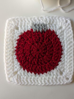This pattern makes a 5.5 in. X 5.5 in square which you can use to make a blanket, pillow, tree skirt, sweater, and more! You can also make just the ornament to hand on your tree or sting several together to make a holiday garland.