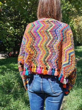 HARMONIZER is a very attractive (and not so difficult) chevron knitting pattern for a unisex transformer – scarf, cape, wrap, poncho... Multiplying “color block” with shifted stitches is an amazing way to make use of yarn leftovers and to blend many different colors and yarns. Pattern is written (stitch by stitch / row by row) in English (no chart). You have a lot of photos and video links for important stitches.