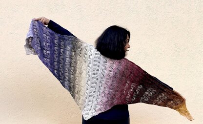 The Harvest Shawl is inspired by these fields that stretch across the rows of hills surrounding my home. A wheat-sheaf pattern alternates with garter stitch sections to gently transition to the next color. Designed to be knit at a gradient, it is perfect to use for an Advent kit or a selection of leftover yarn. By knitting one color a day, the shawl can be easily knit in the busiest month of the year: December. Each color is a manageable amount of daily knitting. The shawl is worked as two separate triangles that are grafted together at the end to form one large triangle.