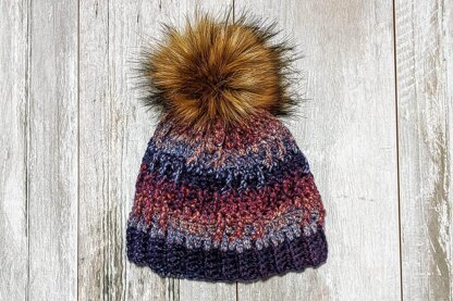 The Harvest Beanie is a fun little hat that is full of texture. It is worked in the round, with a series of Front Post Triple Crochet to give the appearance of raised posts. I named it the Harvest Beanie, because the yarn color reminds me of rich, fall hues.