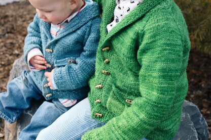 Knit from the top down, with raglan sleeves, a generous shawl collar and snappy pleated pockets, Harvey is sure to bring out the Little Old Man in all of us. Sized from 6 months to adult XL, Harvey can be knit for everyone!