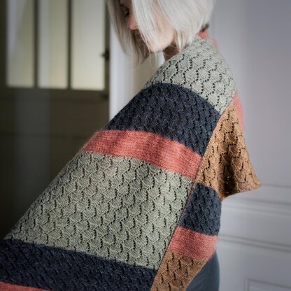 (FRA) HASHIGO est un wrap de 4 couleurs mélangeant fingering et mohair. Commençant avec une couleur dominante, se terminant par une autre, point facile à tricoter, pas de couture et pas de fils à rentrer à chaque section !