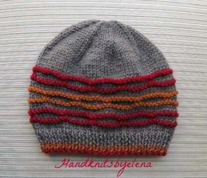 The hat is made on straight needles and has a seam.
