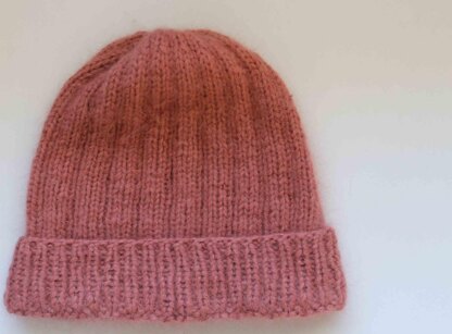 A perfect simple hat – knitted in 2 strands of fluffy angora yarn, quick and easy.