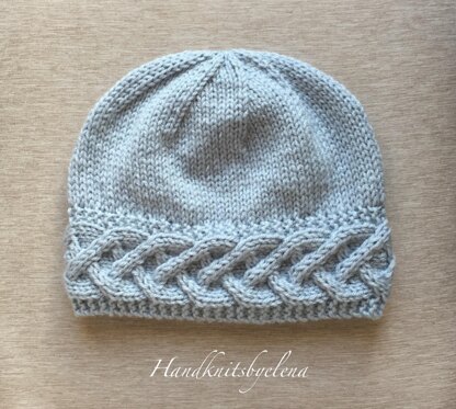 The border of this hat is made sideways, then stitches are picked up and the top is knitted in the round.