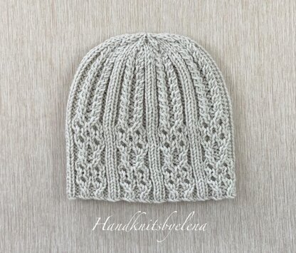 This hat is knitted in a very cute and easy stitch with honeycomb cables. The pattern includes both written instructions and a chart for the cable stitch.